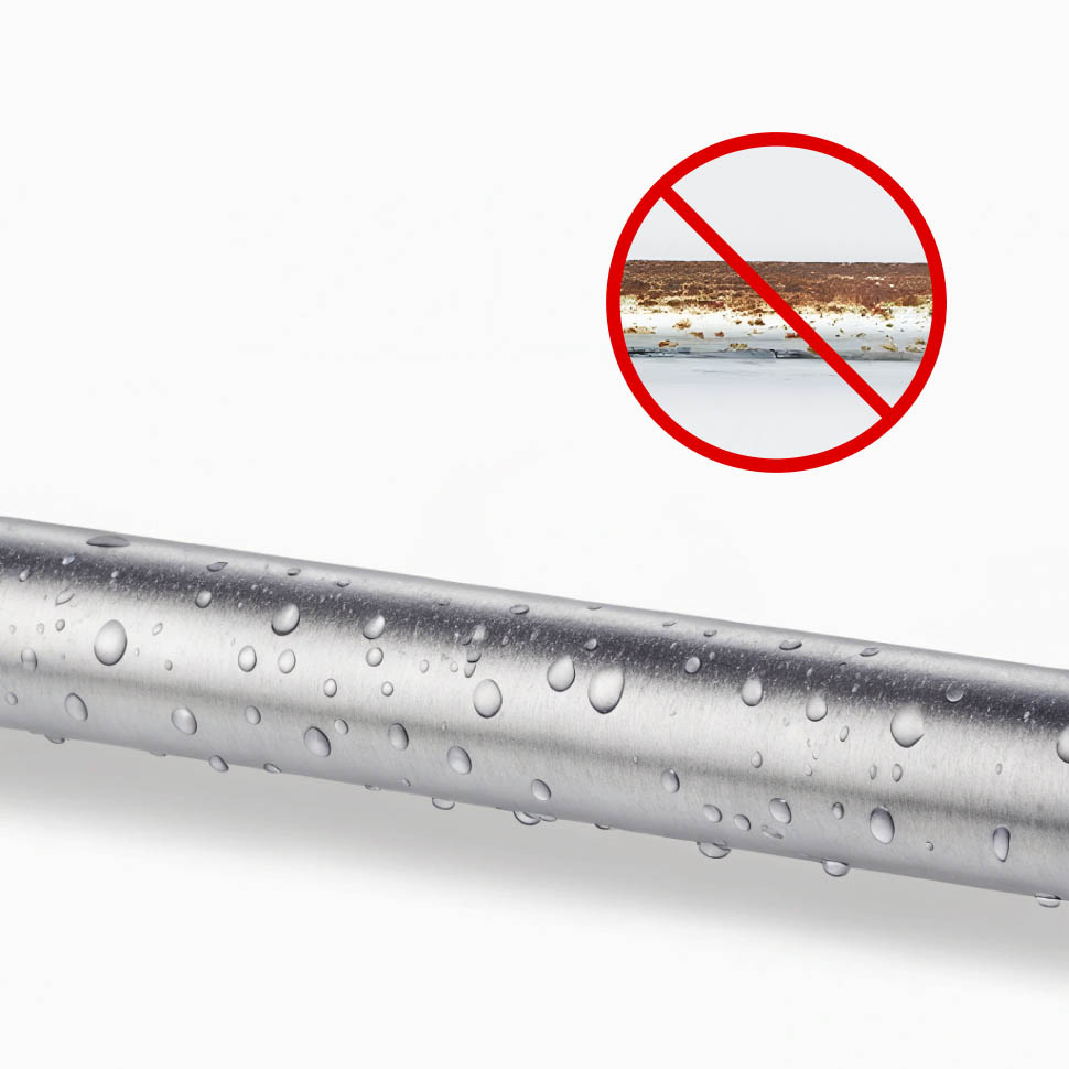 Штанга карниза изготавливается без стыков и соединений из цельной трубы диаметром 20 мм с толщиной стенки 1 мм из высококачественной полированной нержавеющей стали марки AISI 201, AISI 304 и их Российских аналогов 08Х18Н10, 12Х15Г9НД ГОСТ 5632. Крепление карниза сварено аргоном из двух частей – штифта и опорной пластины. Штифт изготавливается из трубы диаметром 18 мм с толщиной стенки 1,5 мм из нержавеющей стали марки AISI 304 и её Российского аналога 08Х18Н10 по ГОСТ 5632. Опорная пластина крепления карниза изготавливается из листовой нержавеющей стали толщиной 2 – 3 мм и диаметром 52 мм марок AISI 201, AISI 304 и их Российских аналогов 08Х18Н10, 12Х15Г9НД ГОСТ 5632. По ТУ 25.99.11–001–19885372–2019 выдерживаемая нагрузка не менее 20 кг. Отражатель изготавливается диаметром 55 мм.